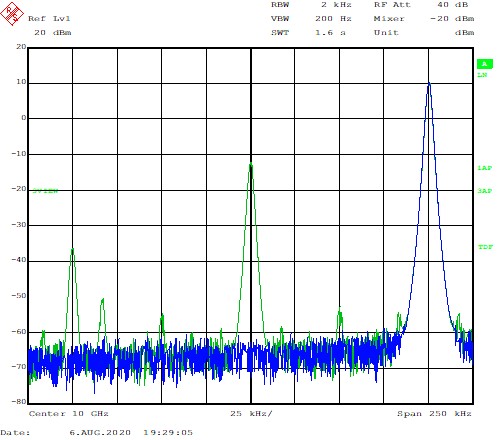 - Zweite LBW zur Minimierung der Integer Boundary außerhalb des Abstimmbereichs des LO (LBW1 = Low Noise / LBW2 = Low Spurs) | |