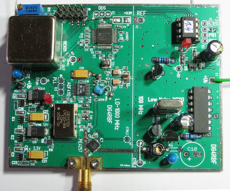 Referenzoszillator mit DDS und zwei Frequenzen 100 MHz (Low Noise) und 1000 MHz Die Referenzfrequenz ist an einen OCXO gebunden und durch die DDS in feinen Schritten abstimmbar. (Integer Boundary Vermeidung) | |